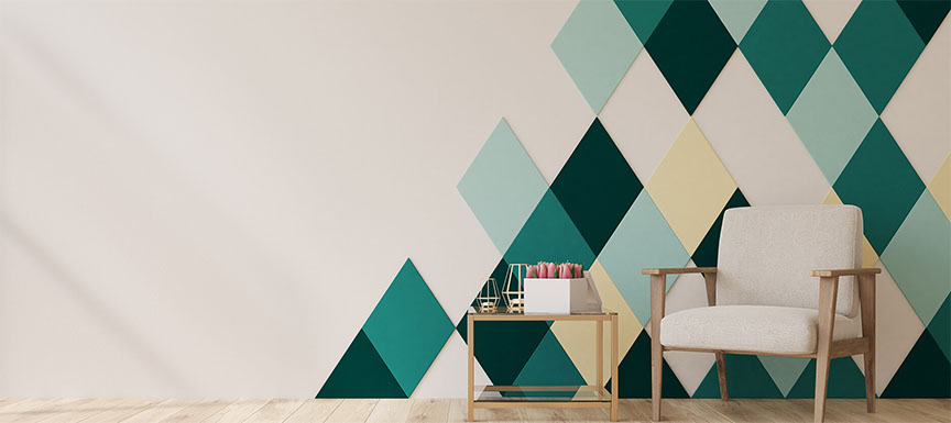 If you have something exquisite on your mind, it’s a great opportunity to use Nerolac’s Impressions Metallic Finish range. Add a tinge of style to your bedroom or living room by covering the wall with rich and elegant patterns like velvet or mesh. Another attractive way to design your accent walls using blissful greens is trying the ombre technique. Choose three levels of dark and light shades and create a stylish ombre pattern on your walls.