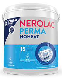 Nerolac Perma No Heat is a heat-reflecting liquid-applied waterproof coating based on acrylic copolymer emulsion. It reflects visible radiation and infrared rays, thereby reducing the surface temperature up to 15ºC.